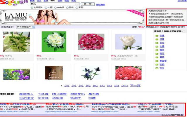 在www.sogou.com的“圖片、貼吧、問答”搜索結果最下面會智能匹配出現廣告: